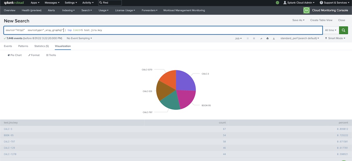 source="http2" sourcetype="_xray_graphql" | top limit=5 test.jira.key
